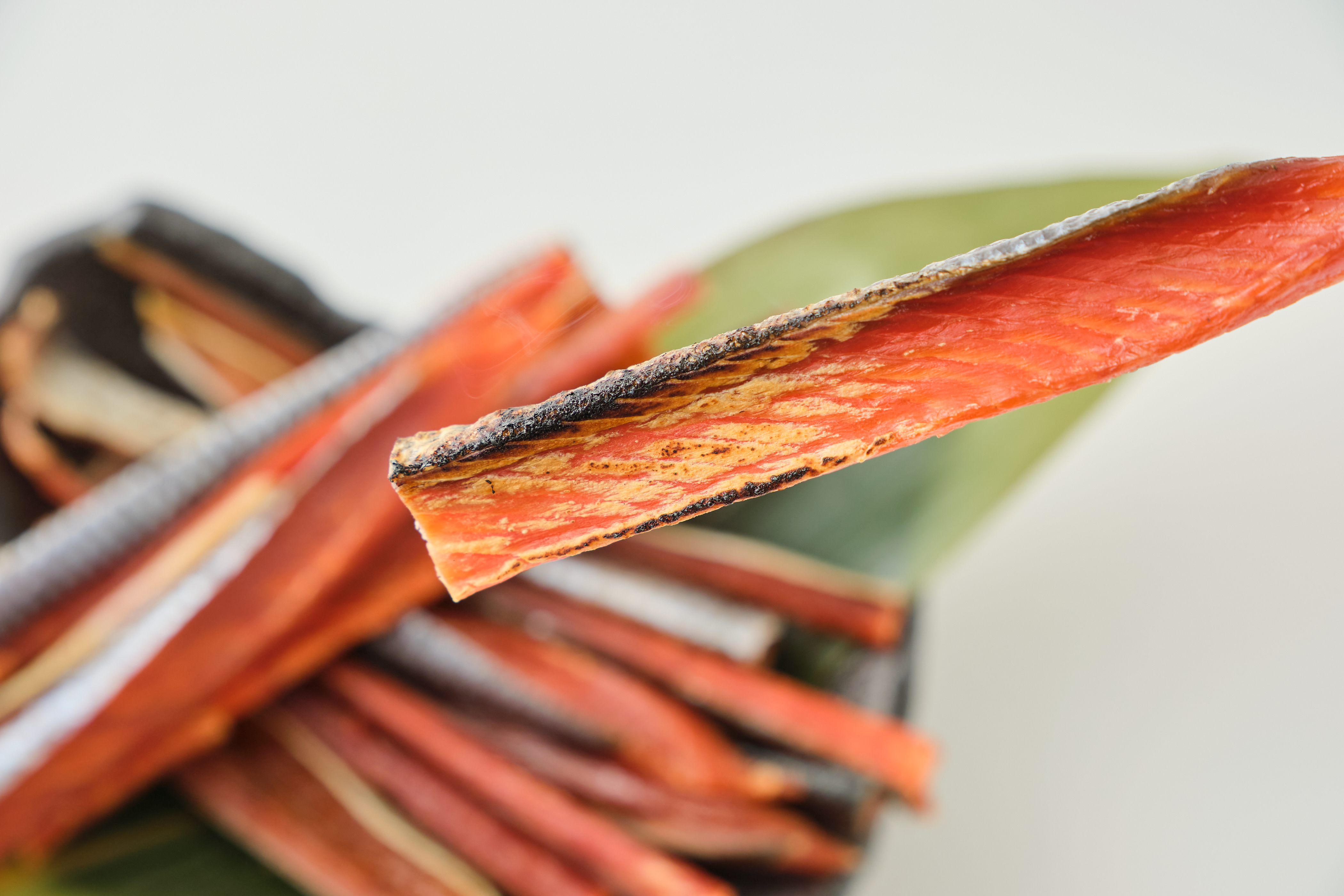 上品な塩加減と熟練の技による絶妙な干し加減が、鮭の豊かな香りを損なうことなく、深みのある味わいを生み出します。噛めば噛むほどに鮭の旨みがじゅわっと広がり、一度食べたらやみつきになること間違いなしです。
